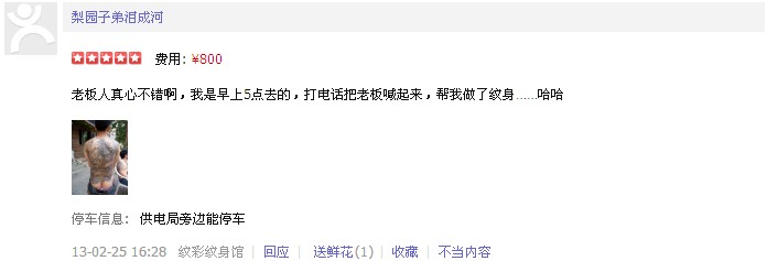 看看到紋過(guò)朋友怎么說(shuō)(來(lái)自最真實(shí)的點(diǎn)評(píng)——大眾點(diǎn)評(píng)網(wǎng)):